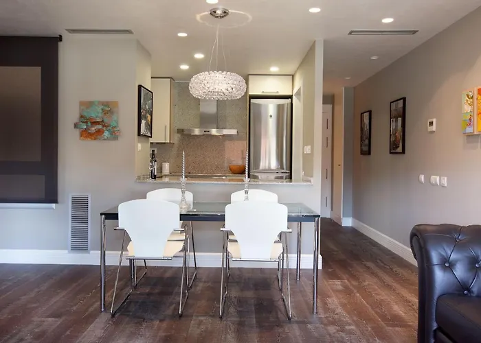 Das 75 m² große Apartment Ferienwohnung Calabria Luxury befindet sich im Stadtviertel Eixample von Barcelona und bietet einen Blick auf die Berge. Mercat de la Boqueria ist zudem innerhalb von ungefähr 15 Gehminuten erreichbar.